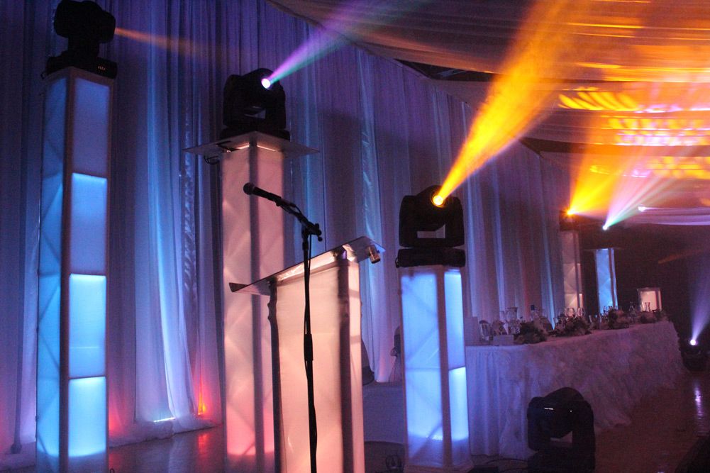 Yes. We offer DJ services, live entertainment, and production enhancements including sound, lighting, displays, and event upgrades.